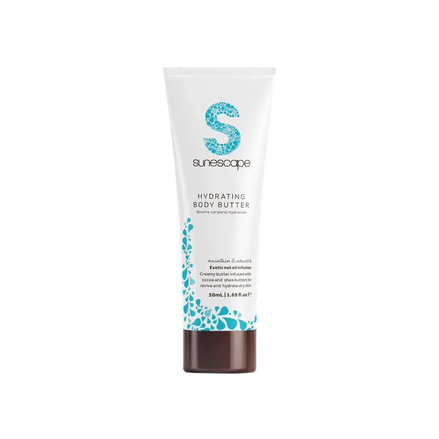 Your skin deserves the royal treatment and with Sunescape’s Hydrating Body Butter, you’ll get just that! This rich, indulgent body butter is infused with Cocoa and Shea Butter and exotic nut oils, that lock in moisture, revive and hydrate dry skin and extend the life of your tan. With a light, creamy texture, this body butter melts into skin easily – apply round the clock to maintain a fab faux glow.